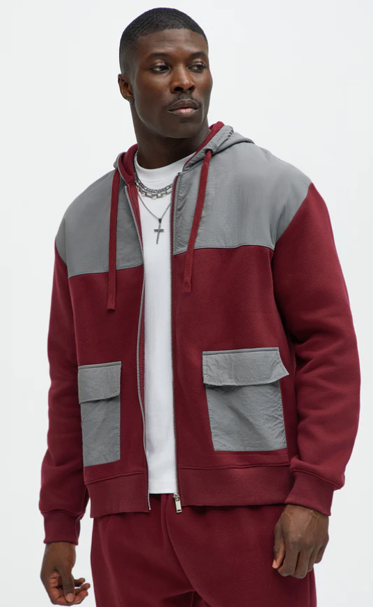 Este polerón con capucha en color burgundy combina comodidad y estilo urbano en un diseño versátil para el día a día. Incluye cierre frontal completo, mangas largas y bolsillos funcionales, ideales para mantener tus manos abrigadas o llevar lo esencial.